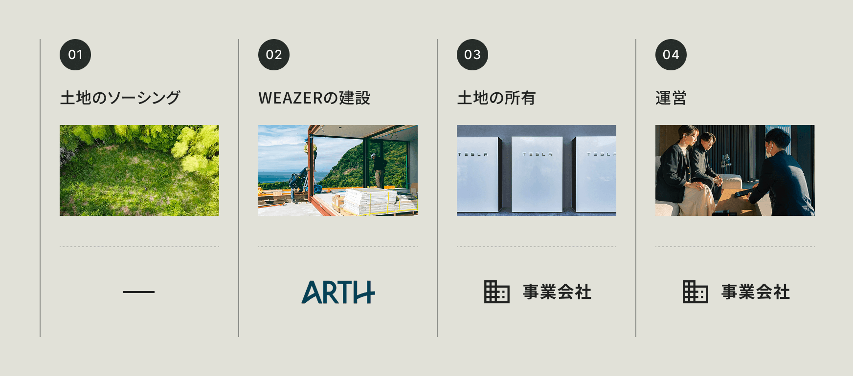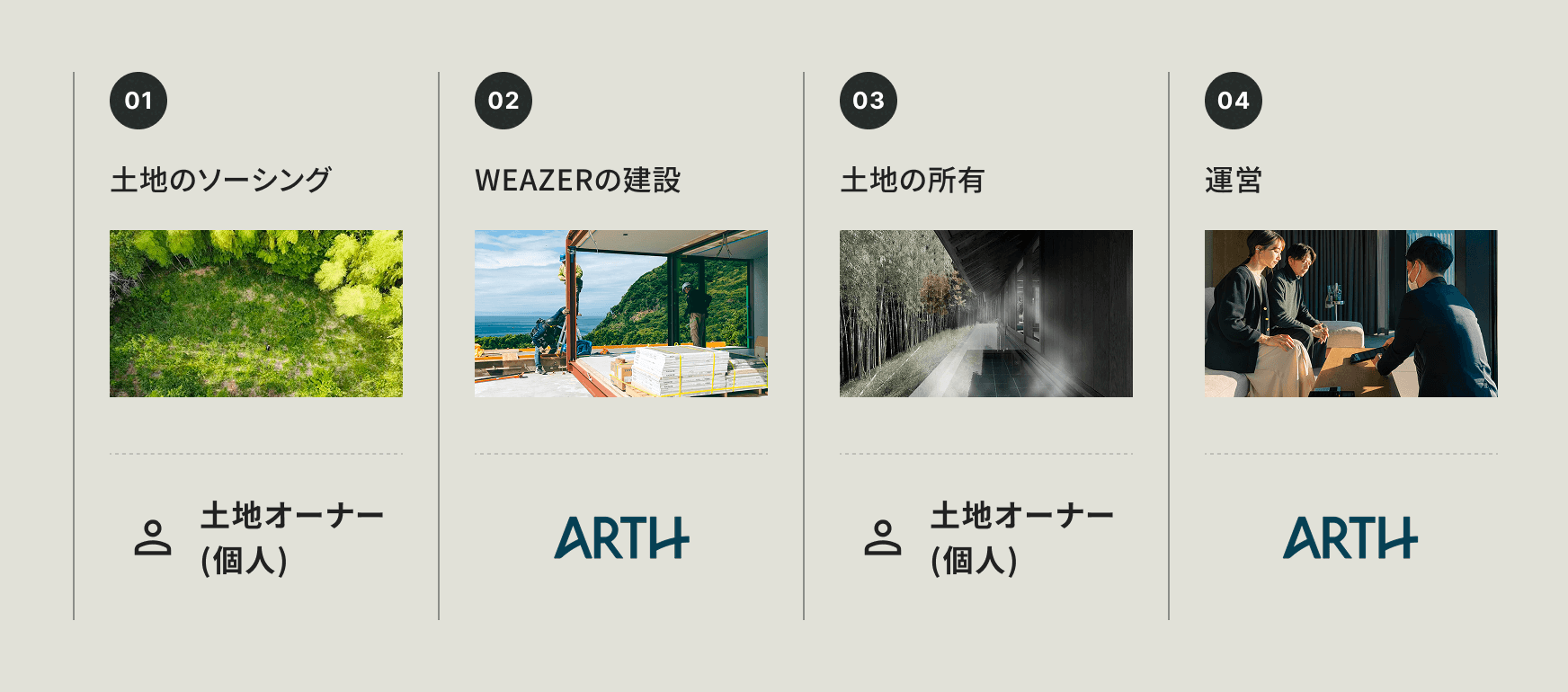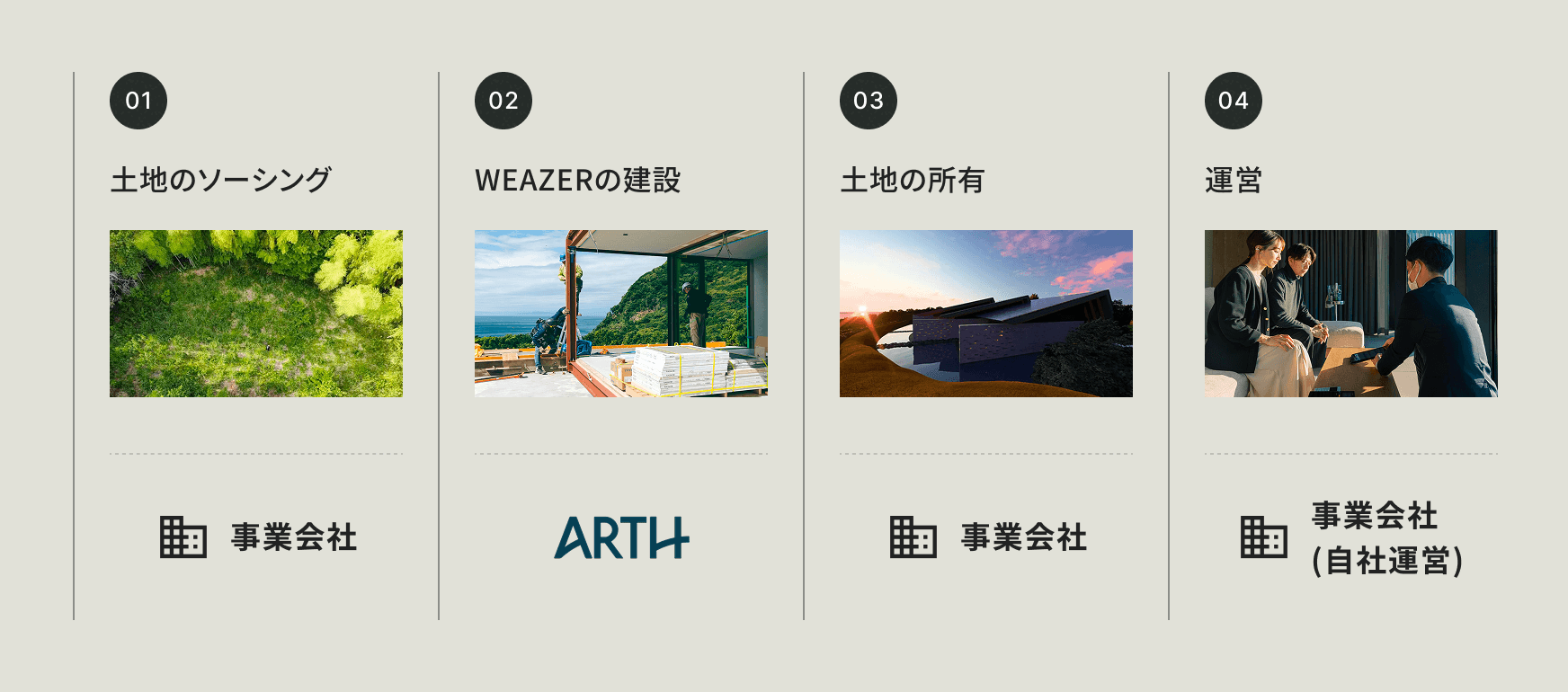 ユニット購入をはじめ、WEAZERを活用したホテル開発、別荘建築、施設運営委託やエリア開発に至るまで、様々な形でソリューション提供が可能です。まずはご相談下さい。