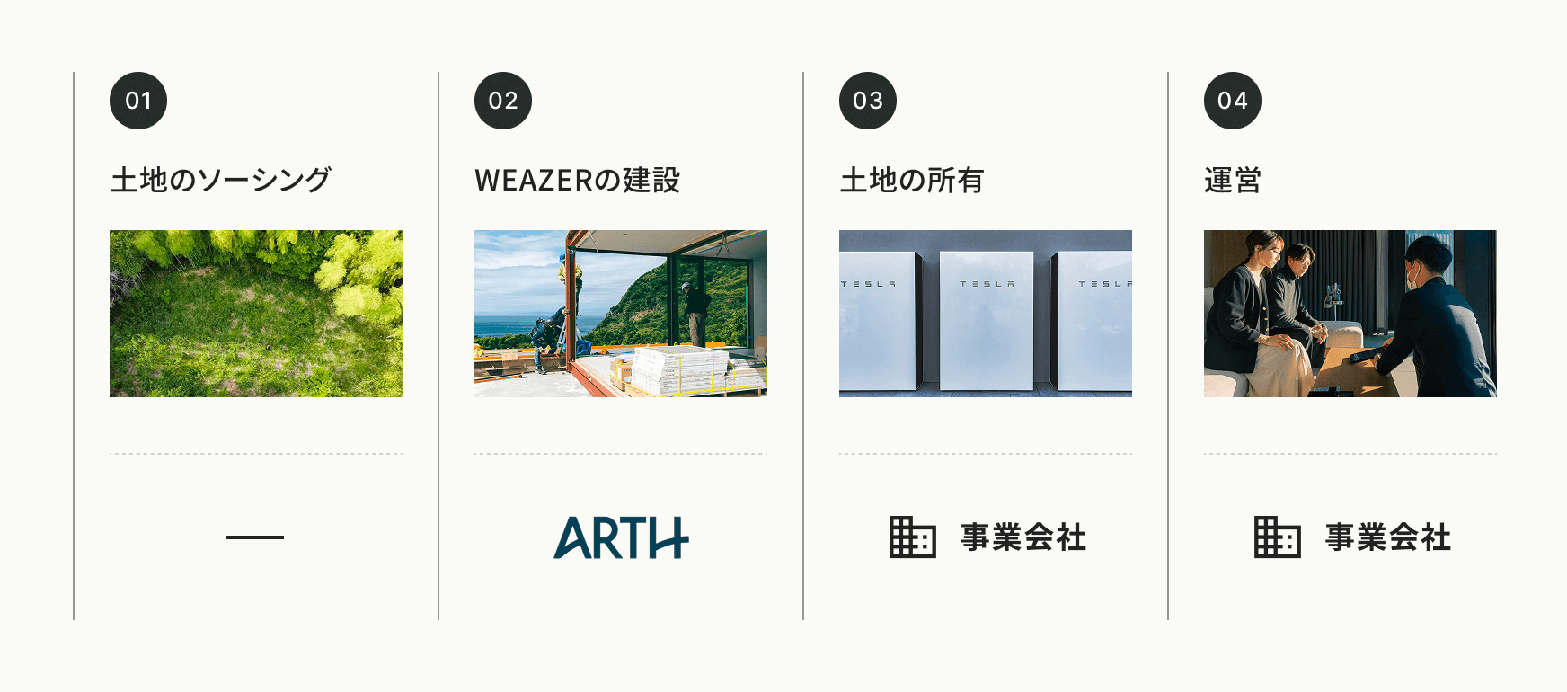初号機が設置されているWEAZER西伊豆は、伊豆市と沼津市の境にある舟山という集落であるが、実際に豪雨による断水や台風による停電などが発生しても、WEAZERは電気や水を供給し続けている。地域の方々にも、各家庭で万が一インフラが止まった場合、本施設を緊急避難場所として、頼って頂くように呼び掛け域内レジリエンスの向上に寄与している。