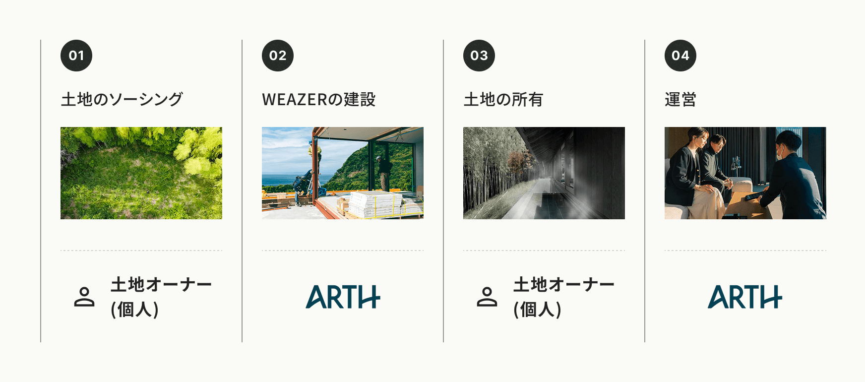 加えて、WEAZERを設置する場所は湯河原の中でも竹林に囲まれた俗世から切り離された完全プライベート空間であり、敷地内に温泉も通っている特別な場所である。この土地のオーナーが、我々(ARTH社)の宿泊施設の1つであるLoquat西伊豆の常連客であり、弊社の手掛ける空間創出やホスピタリティ、そして新たな技術で、湯河原を盛り上げたいとの思いから、WEAZERの湯河原プロジェクトが開始した。